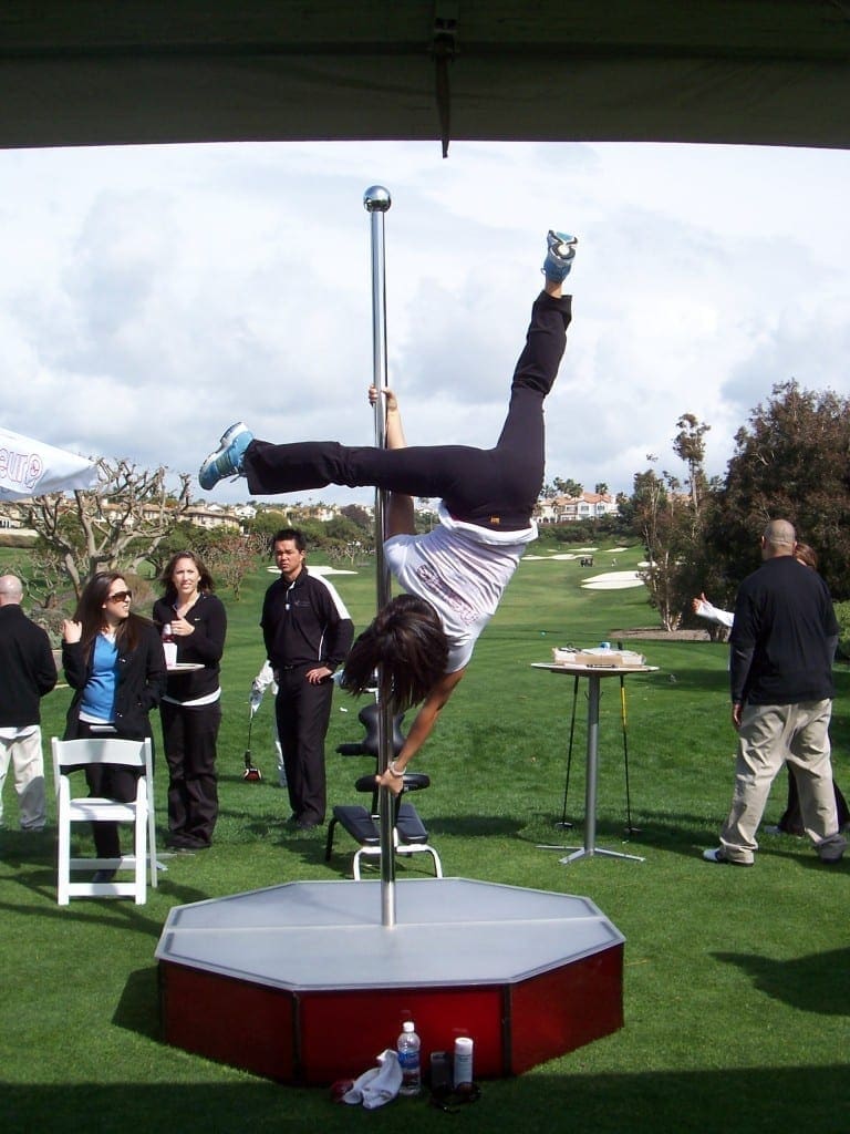 From the California Science Center to the Marines of San Diego and more recently on a Spaceship w/ Puddle of Mudd or in the promo of HBO’s Entourage–if you missed them last season on House… Well, just keep your eyes out cause many high end parties and NYC hot spots use the All Star Stages portable stripper pole to ignite their events.