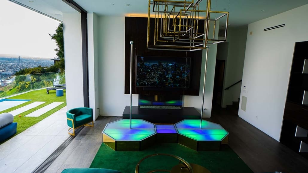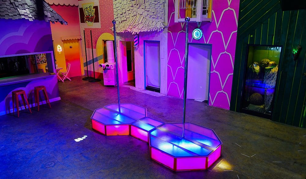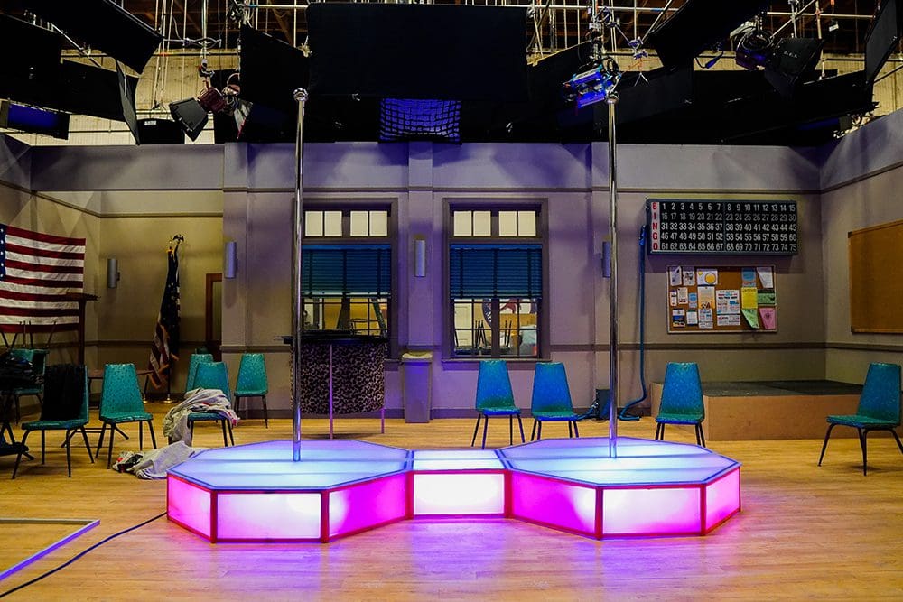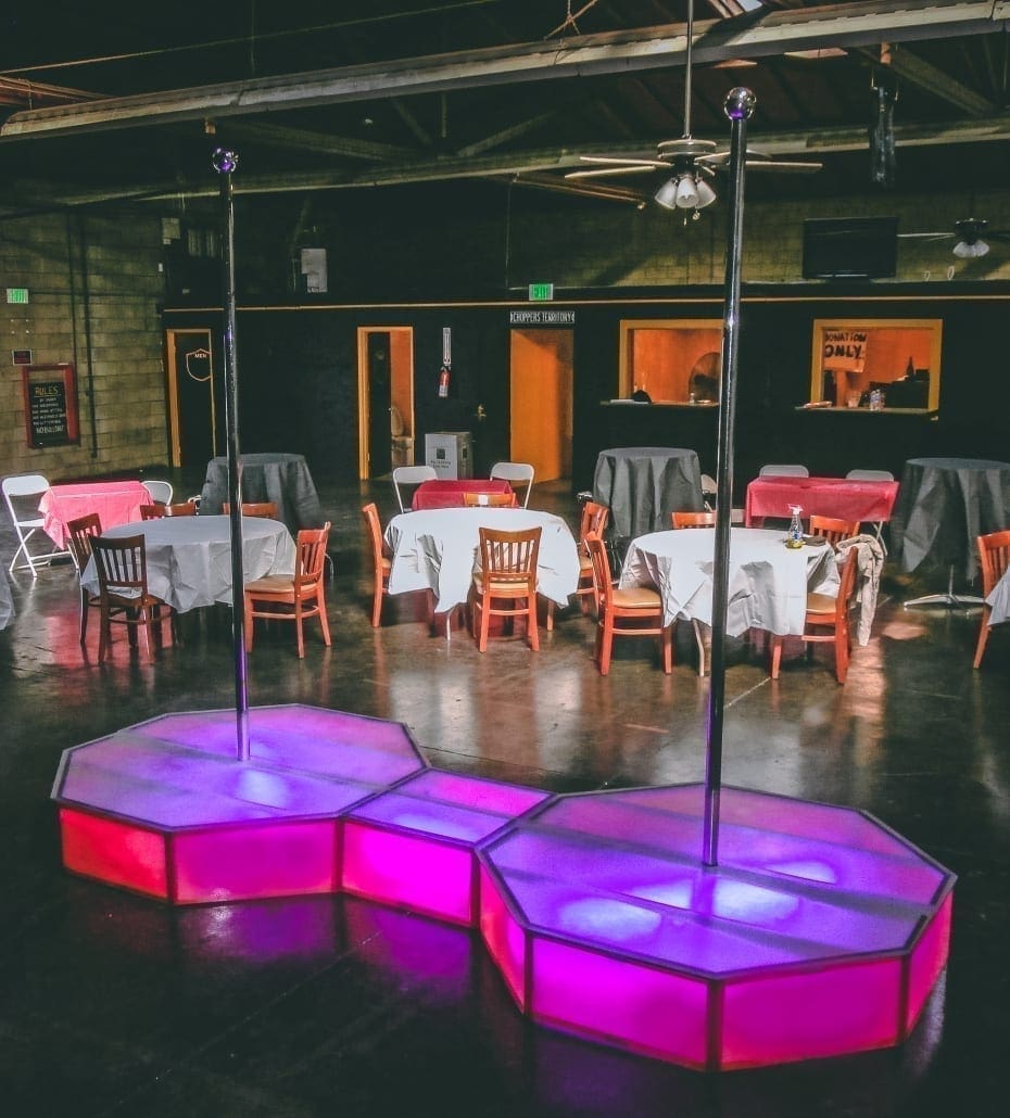 12×5′ Acrylic Stage, Catwalk & 9.5′ Ceiling-Free Poles